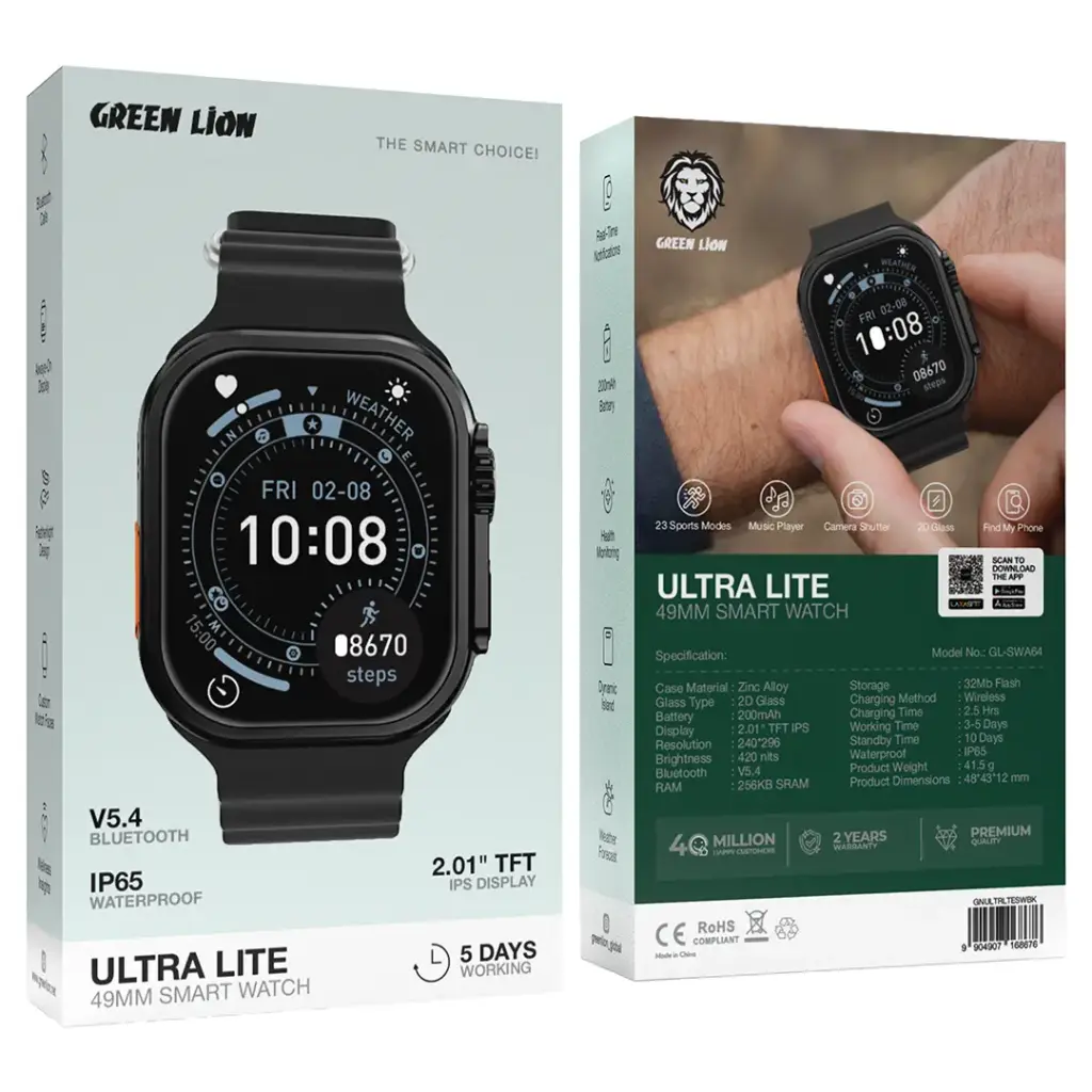 Green Lion ULTRA LITE 2.01” TFT IPS Display Smart Watch – Black
