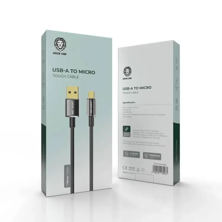 Green Lion USB-A to Micro USB Touch Cable 1M 3A – Black