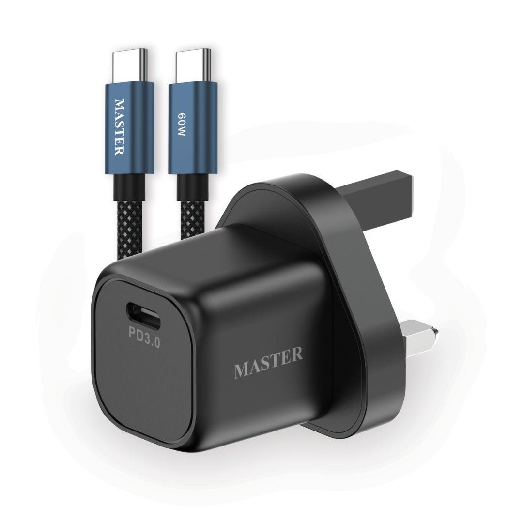 Master 30W CAHRGER TYPE A + TYPE C WITH CABLE TYPE C TO TYPE C 60W - BLACK